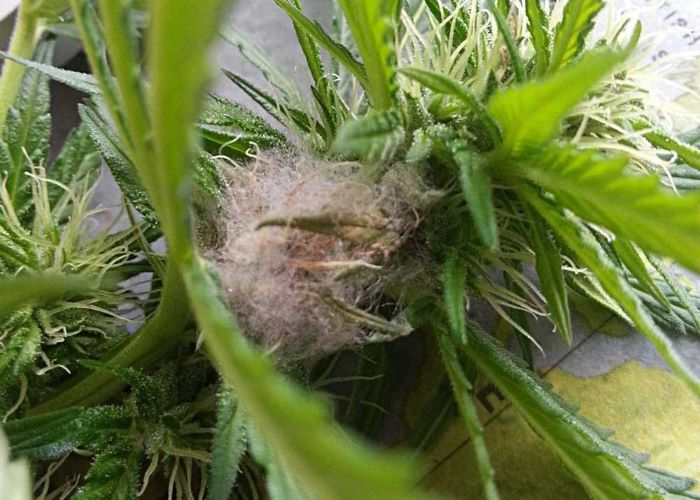Грибок, поражающий соцветия каннабиса – это разновидность плесени, возникновение которой вызывает неподдельное чувство тревоги у каждого гровера. Гниль может поразить шишки на этапе цветения, уничтожив весь урожай, а также появиться внутри соцветия после сбора урожая – в процессе сушки. Зачастую образование грибковой плесени является результатом повышенной влажности вследствие чрезмерного полива и отсутствия должного внимания регулированию уровня влажности в гроубоксе. Густая растительность также может накапливать избыток влаги в местах расположения шишек и стеблей растений, поэтому обрезание излишней вегетативной массы (дефолиация) может способствовать предупреждению возникновения плесени. Гроверам, поднимающим автоцветущие сорта, следует обратить внимание на то, что дефолиация на стадии цветения может стать причиной стресса и значительно снизить показатели урожайности. После появления плесени на одном соцветии, она начинает активно распространяться, разнося свои споры по воздуху, становясь причиной заражения всех остальных соцветий, приводя к гибели всего урожая. Признаки серой гнили, на которые следует обратить внимание, это возникновение кашеобразной массы на стеблях и внутри соцветий, увядающие, желтые листья, шишки, которые выглядят влажными, а затем становятся серыми или коричневыми с образованием на них серой паутины или белых мучнистых спор. Можно ли спасти шишки, пораженные плесенью? Краткий ответ: Нет. Обратите внимание! Прием в пищу/вдыхание грибка серой плесени может вызвать серьезные осложнения, включая поражение пищеварительного и/или дыхательного трактов и даже головного мозга.