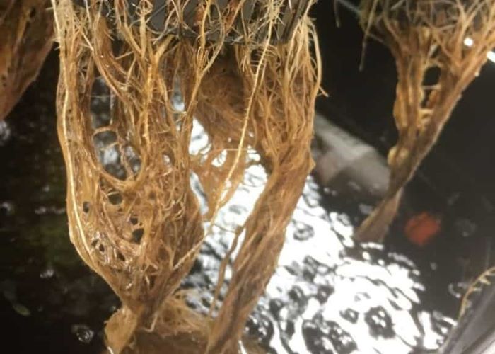 В отличие от здорового белого/кремового цвета, наличие корней бурого оттенка, покрытых слизью, является признаком их поражения корневой гнилью. Причиной ее возникновения может быть деятельность целого ряда микроорганизмов, включая бактерии, грибы, водоросли и оомицеты паразитической направленности. Корневая гниль преимущественно поражает растения каннабиса, выращиваемые в гидропонных системах, однако корни также могут быть заражены патогенами вследствие чрезмерного полива, создающего условия для развития паразитических микроорганизмов под названием Pythium, которые проникая в корни, вызывают поражение и разрушение клеток и, в конечном итоге, гибель всей корневой системы. Как правило, если корни слишком долго находятся во влажной среде без доступа кислорода, они попадают в зону риска развития корневой гнили. Если растение выглядит поникшим или увядающим, независимо от того в каком грунте, субстрате или гидропонике оно растет, это почти всегда признак неблагоприятных процессов, протекающих в корневой системе. Увядание часто сопровождается другими симптомами, проявляющимися на листьях, в частности, в виде следов ожогов, возникновения беспорядочного сочетания дефицита питательных веществ на листьях, что выражается в абсолютно рандомном образовании разноцветных пятен. Корневая гниль способна вызывать широкий спектр симптомов, поскольку в отсутствие здоровых корней растение перестает должным образом функционировать!