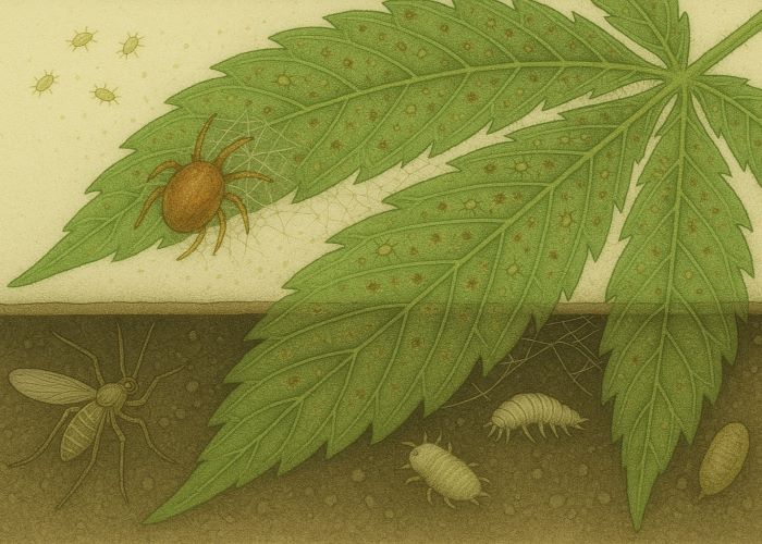 Открытый грунт — это чистый терруар. Он дает каннабису настоящий вкус, устойчивость, яркую ароматику и природную структуру. Но вместе с этими преимуществами приходит и полная ответственность. В аутдоре нельзя «закрыть теплицу» или «подкрутить климат» — все решает внимательность. Вредители здесь не случайны. Они не просто проблема — они симптом. Переувлажнение, перегрев, отсутствие проветривания, сорняки, пыль, дисбаланс питания — все это делает растения уязвимыми, а вредителей — активными.