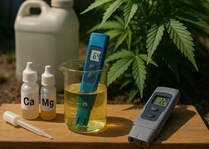 Летом каннабис особенно чувствителен к качеству воды. Даже если подкормка построена по всем правилам, именно вода может стать слабым звеном, незаметно нарушая баланс микроэлементов. В жару возрастает испарение, усиливается транспирация, а вместе с ними — потребление ионов. Если вода содержит избытки или перекосы, это сразу отражается на доступности кальция и магния.
